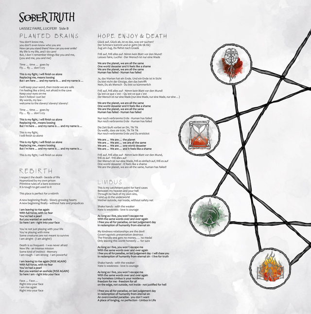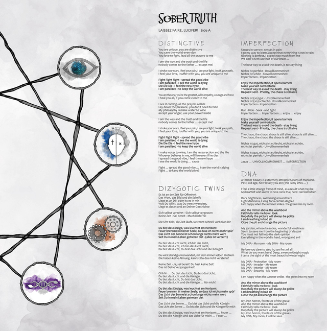 Sober Truth sind mit Laissez Faire, Lucifer! [ lɛseˈfɛʀ, ˈluːsɪfə(r)!] erneut in den Abgründen der menschlichen Psyche unterwegs. Durch sämtliche Räume und Sphären der menschlichen Psyche jagen sie den Teufel und besiegen ihn letztendlich. Musikalisch keinem eindeutig zuzuordnen, werden einige Genres ausgetestet.